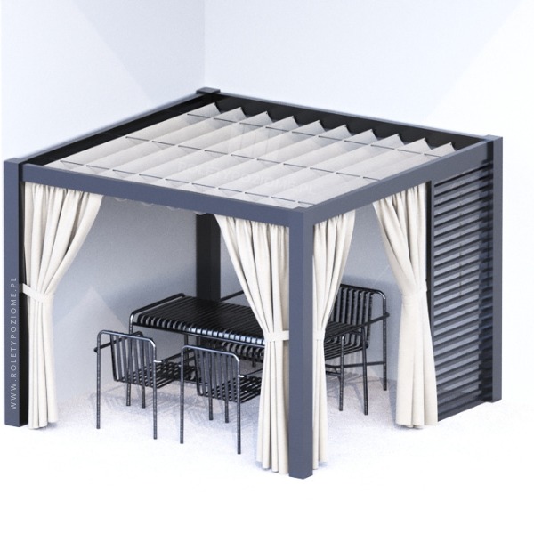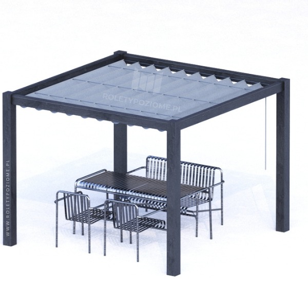 Rolety rzymskie poziome premium przesuwane rozsuwane zadaszenia żagle słoneczne produkowane w Polsce na wymiar. Chroniące od promieni UV oraz chroniące przed deszczem: