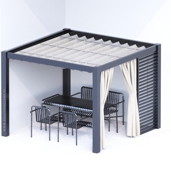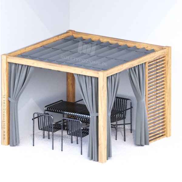 Zasłony, które można zamówić do kompletu chronią również przed wiatrem.